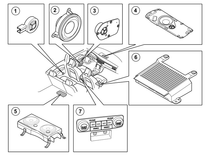3. Mid-range speakers, front door (certain models only).