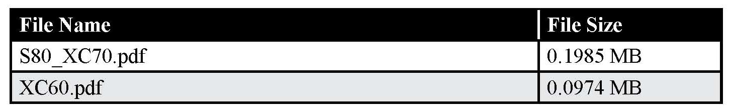 98455-2, XC60: 0.3 hours, S80/XC70: 0.4 hours