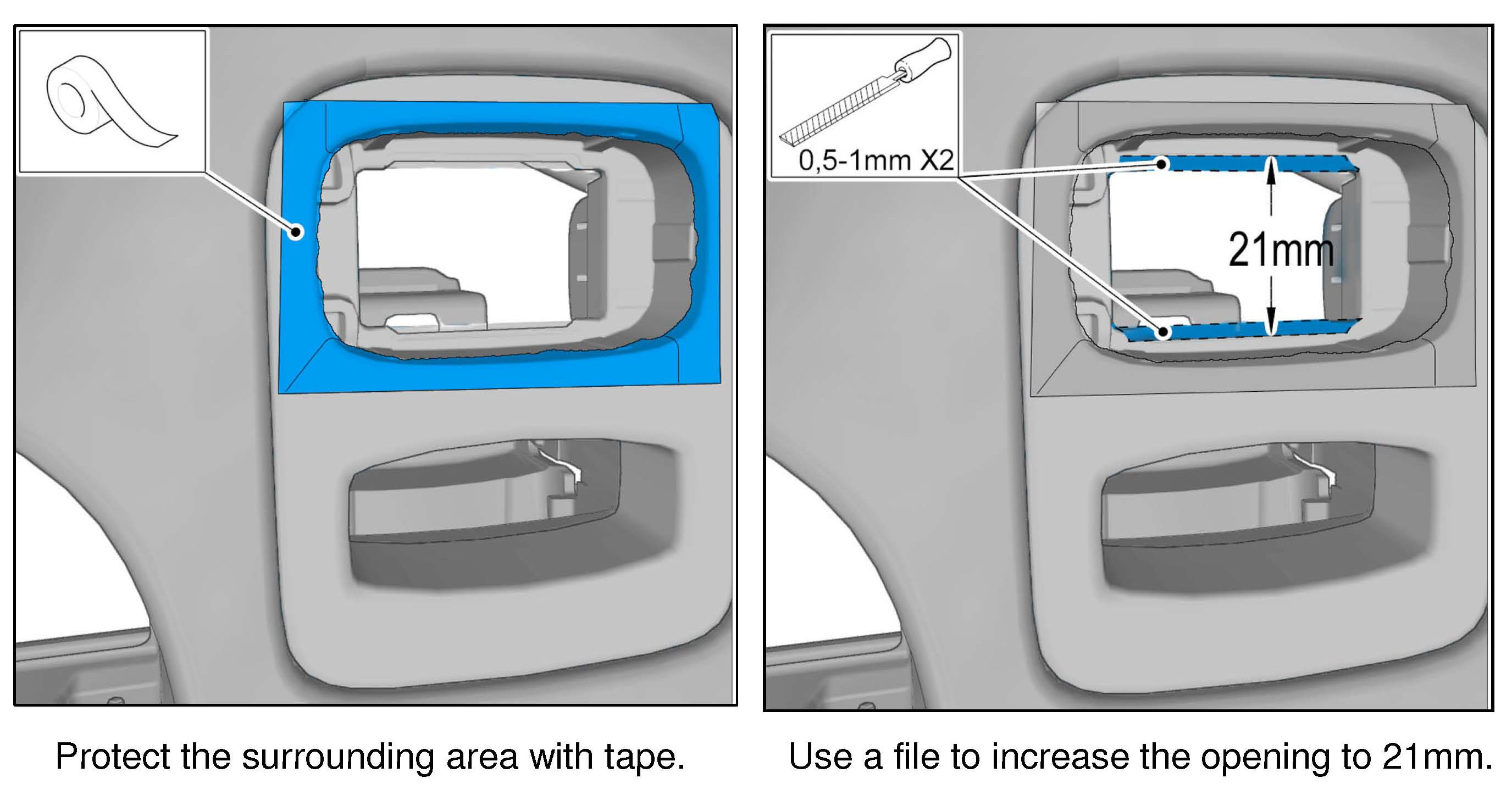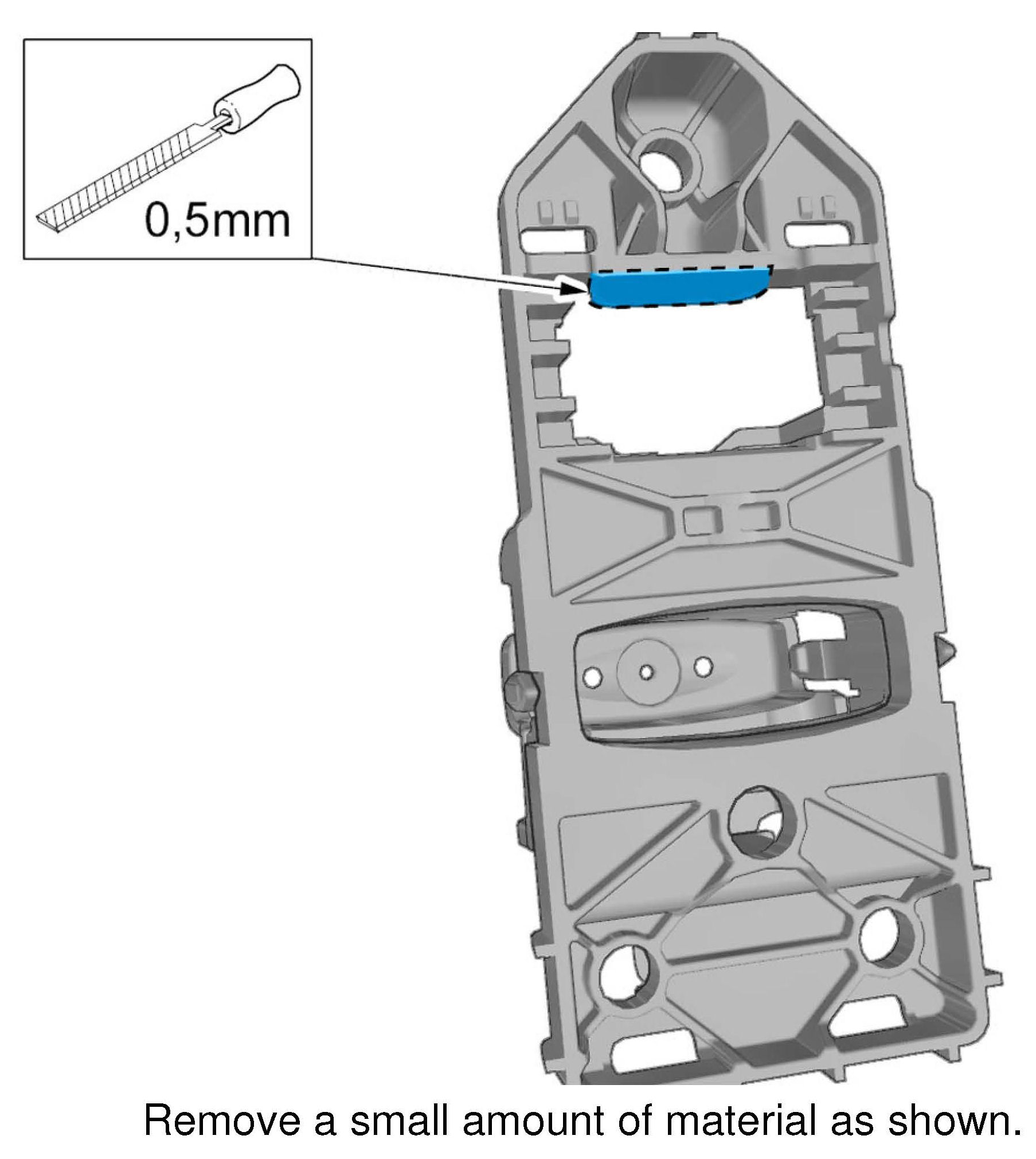 The Start/Stop button has been superseded with a slightly different design. When replacing an old version of the start/stop button with the new version, modification of the bezel is required for proper fit.