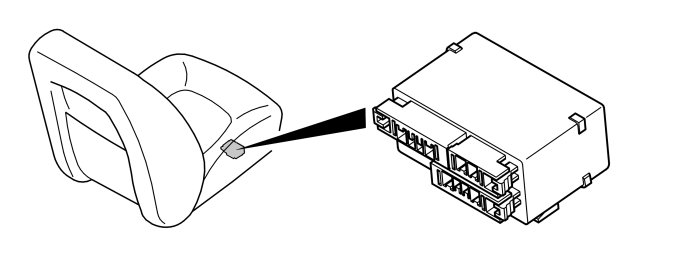 The heater pad and temperature sensor are directly connected to the seat heating module (SHM). The seat heating module (SHM) communicates with the climate control module (CCM) via a LIN bus.