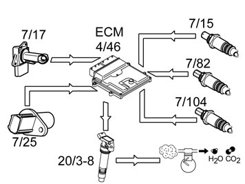The valve for variable intake is controlled by the engine control module (ECM) (4/46).