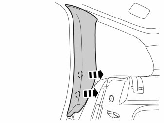 - Detach the C-pillar panel at the lower edge by prying out the lower edge until the two clips release. Angle out the lower edge of the panel and then unhook the upper edge.