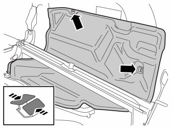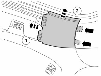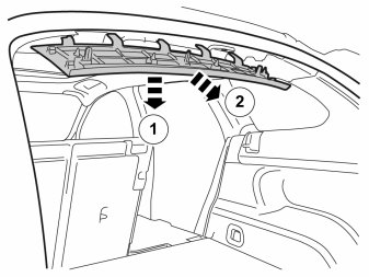 - Remove the smaller headlining panel by pulling it laterally so that the two hooks release. Then unhook the front edge of the panel.