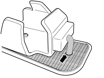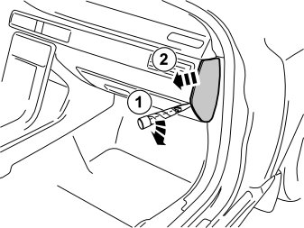 Note! The cradle for the alcohol lock can be positioned either on the thin rubber mat in front of the centre console or on the left hand side of the rear edge of the storage compartment under the armrest in the tunnel console.The thin rubber mat must be purchased separately for cars with the thicker mat.The work is carried out the same way on left and right-hand drive cars, but mirrored on right-hand drive cars. Left-hand drive car shown.