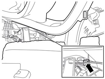 - Insert the cable into the hole in the tunnel console. Position the cradle with the rubber mat and tighten. Take care when tightening the screws and do not overtighten.