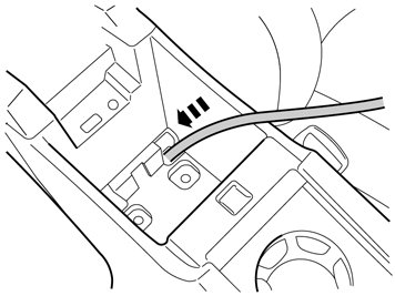 - Take the cradle and route the cable as illustrated and pull it out at the rear edge.