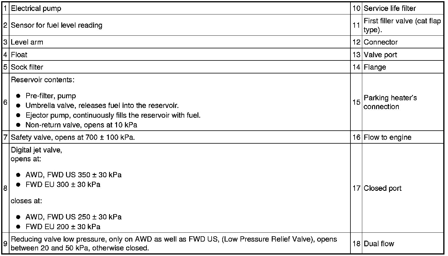 During leak diagnostics the pump in the leak diagnostic unit starts. The valve in the unit is operated by the engine control module (ECM) by grounding the different circuits internally in the engine control module (ECM). Operation depends on whether the diagnostic phase is checking for leakage or checking the function of the diagnostic system. The engine control module (ECM) gauges the power consumption of the pump during pressurization. The power consumption corresponds to a certain pressure in the fuel tank system. See also: Leak diagnostics (certain markets only) Leak Diagnostics (Certain Markets Only)
