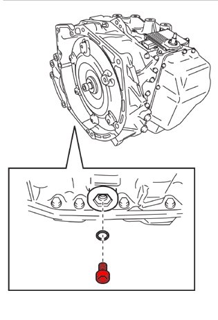 Fit the integrated level plug (Torx 40). Use a new O-ring. Moisten the new O-ring with transmission fluid and tighten according to.