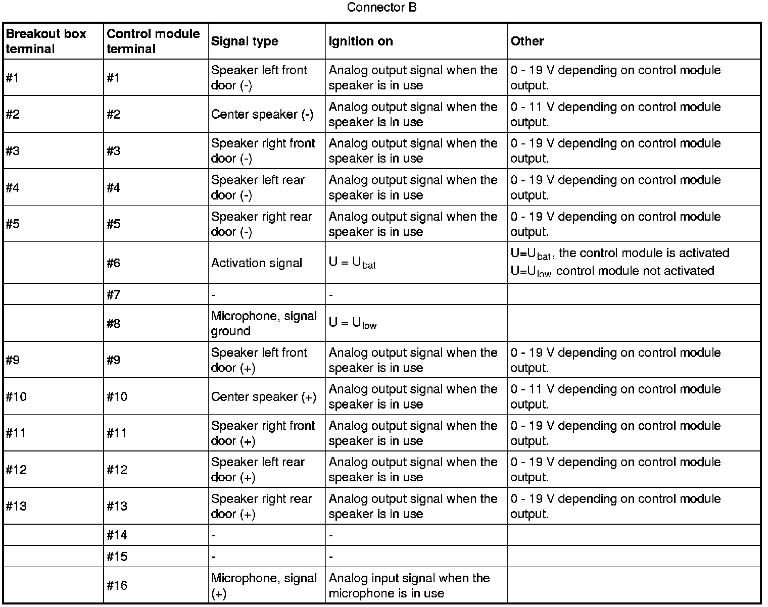 Pinout Values and Diagnostic Parameters