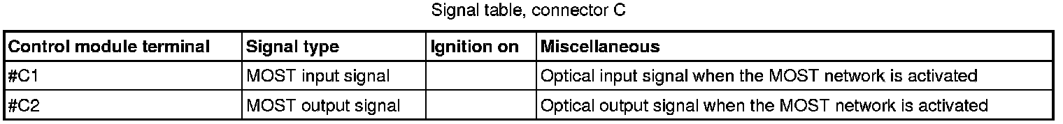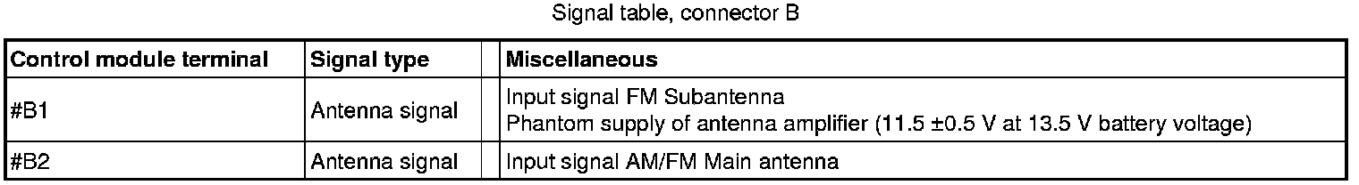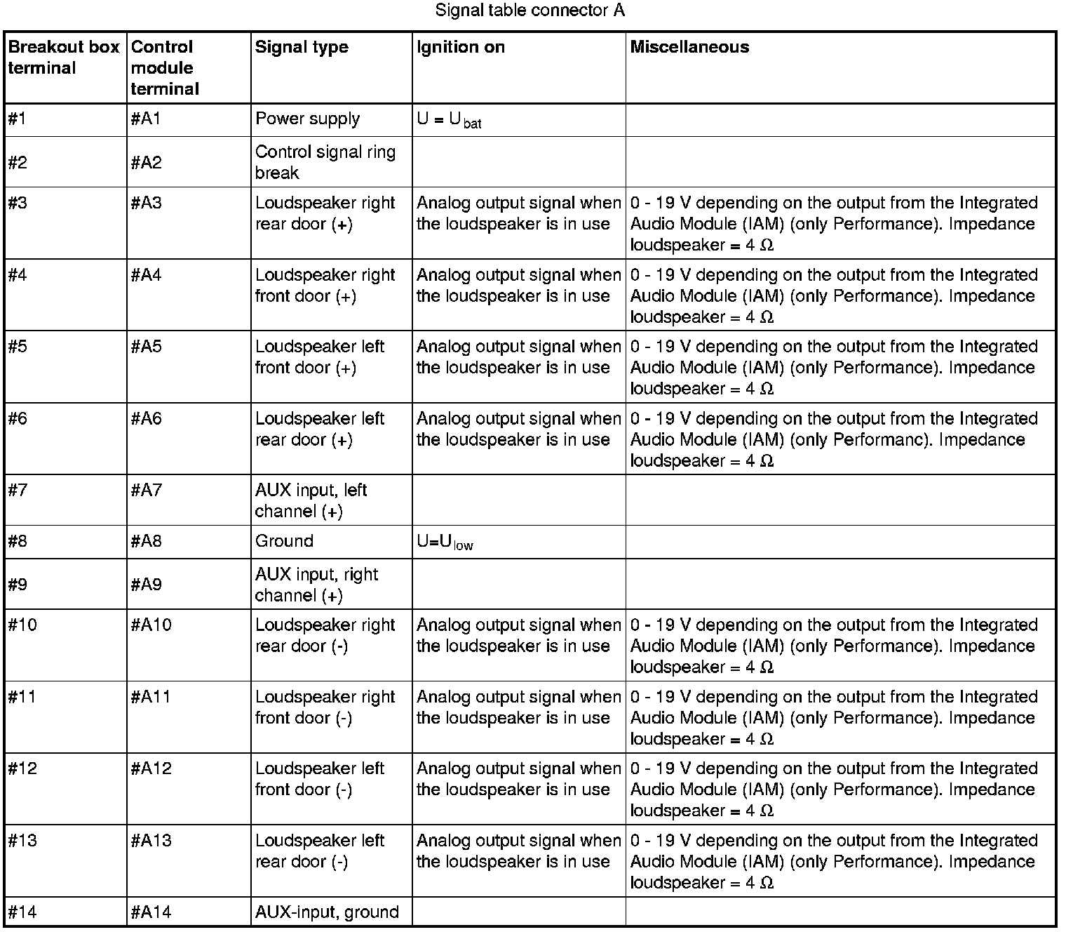 All the values given below are between the terminals stated in column 1 and terminal #A8 in column 2 (power ground). This applies unless otherwise indicated in brackets.