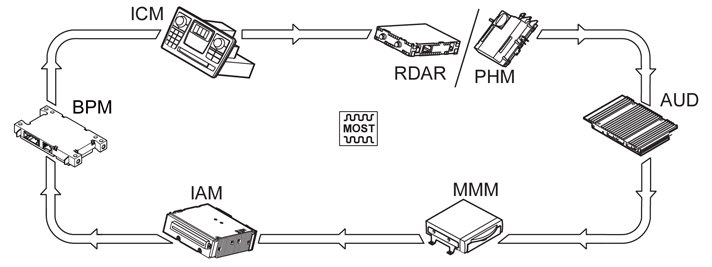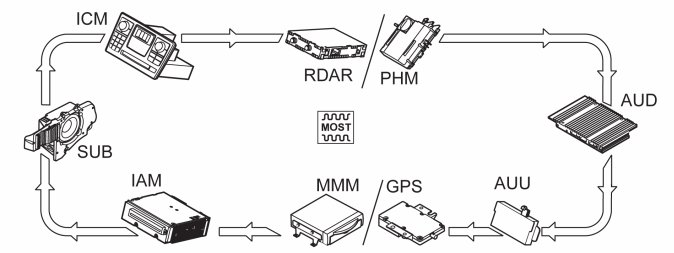 If a control module is not in the stored list, it is disconnected from the MOST network and the functionality of this control module is blocked. This means that control modules in the MOST network cannot be moved from one vehicle to another.