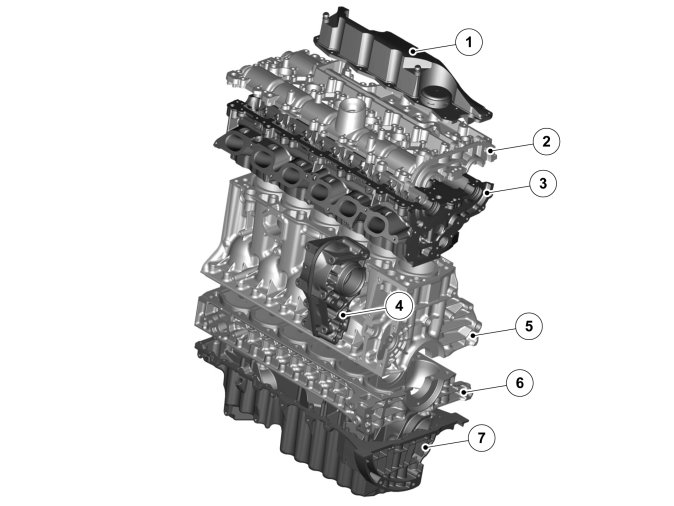The seal between the cylinder head and cylinder block is a conventional cylinder head gasket. The seal between the other gasket faces is a liquid gasket.