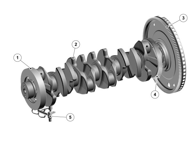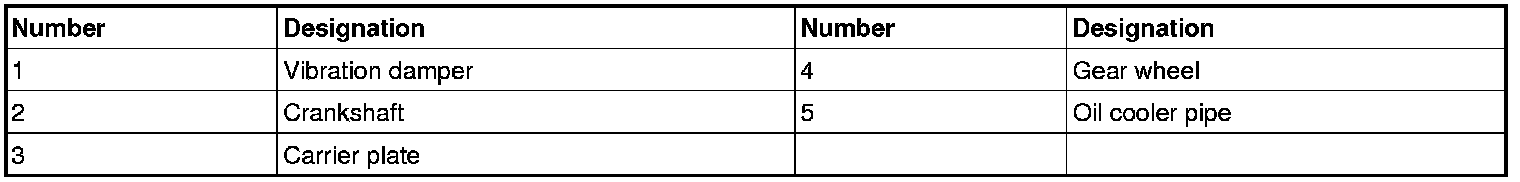 An internal vibration damper is on the front end of the crankshaft. Inside the enclosed vibration damper, a circular flywheel works on a silicone fluid, which dampens the crankshaft torsion oscillations. The vibration damper gives longer service life for the crankshaft and smoother engine operation.