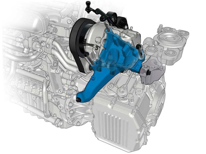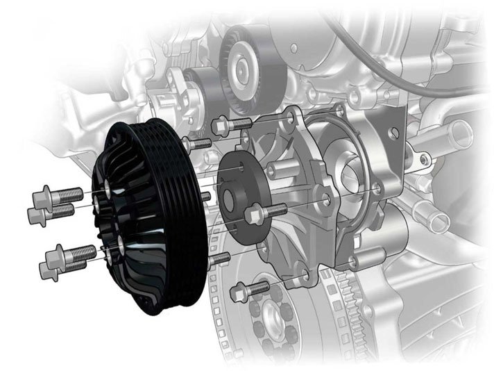 In connection with introduction of EHPAS (electric servo pump), the belt-driven servo pump with its heavy steel belt pulley is discontinued as well as the clutch for the coolant pump. The reduced rotating moment of inertia means more freewheeling, primarily when idling.