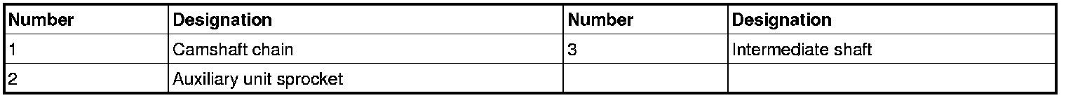 The intermediate shaft is located in the gear housing on the cylinder block. The intermediate shaft drives the camshafts and the auxiliary unit.