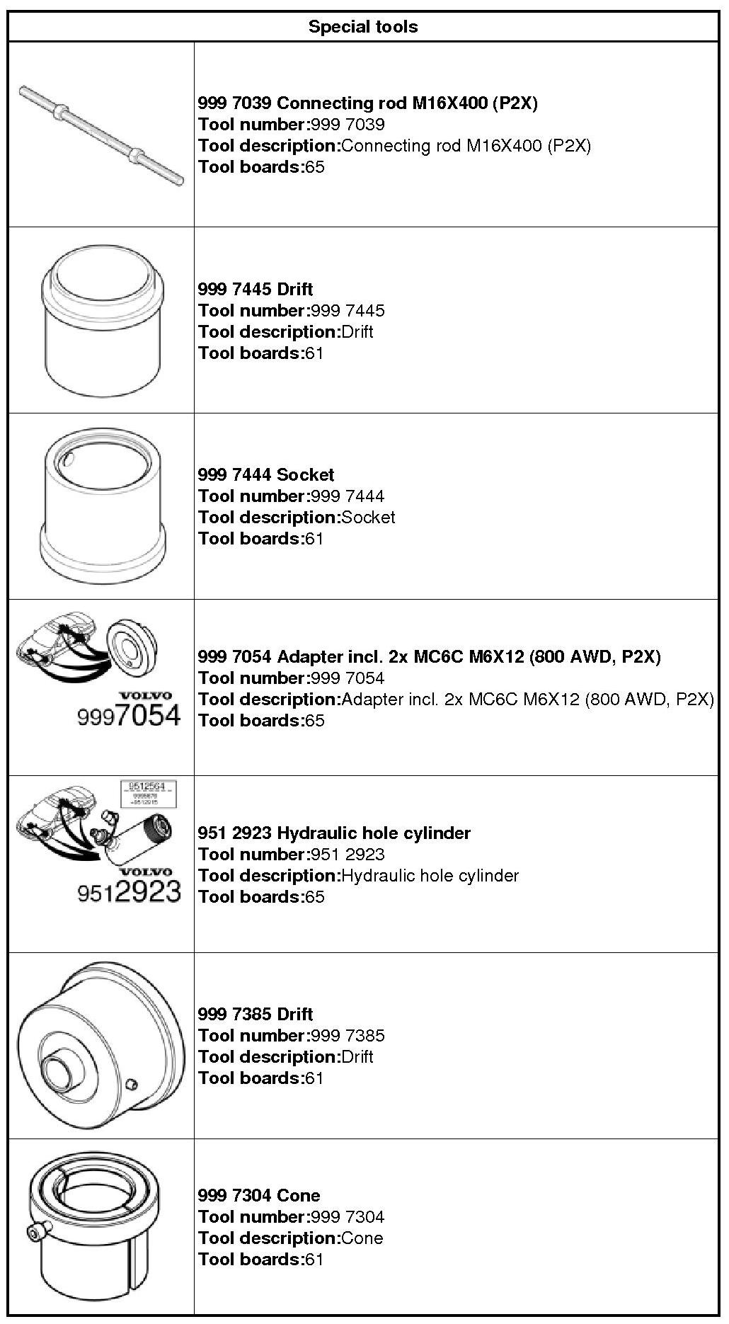 999 7039 Connecting rod M16X360 999 7039 Connecting rod M16X360 999 7445 Drift 999 7445 Drift 999 7444 Socket 999 7444 Socket 999 7054 Adapter incl. 2x MC6C M6X12 999 7054 Adapter incl. 2x MC6C M6X12 951 2923 Hydraulic hole cylinder 951 2923 Hydraulic hole cylinder