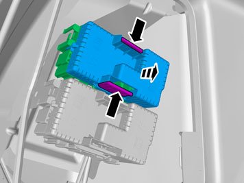 - Press in the catches on the black lid on the fuse holder and remove it.