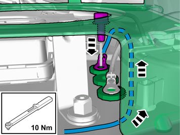 - Insert the cable with the connector in the hole in the spare wheel well and install the rubber bushing.