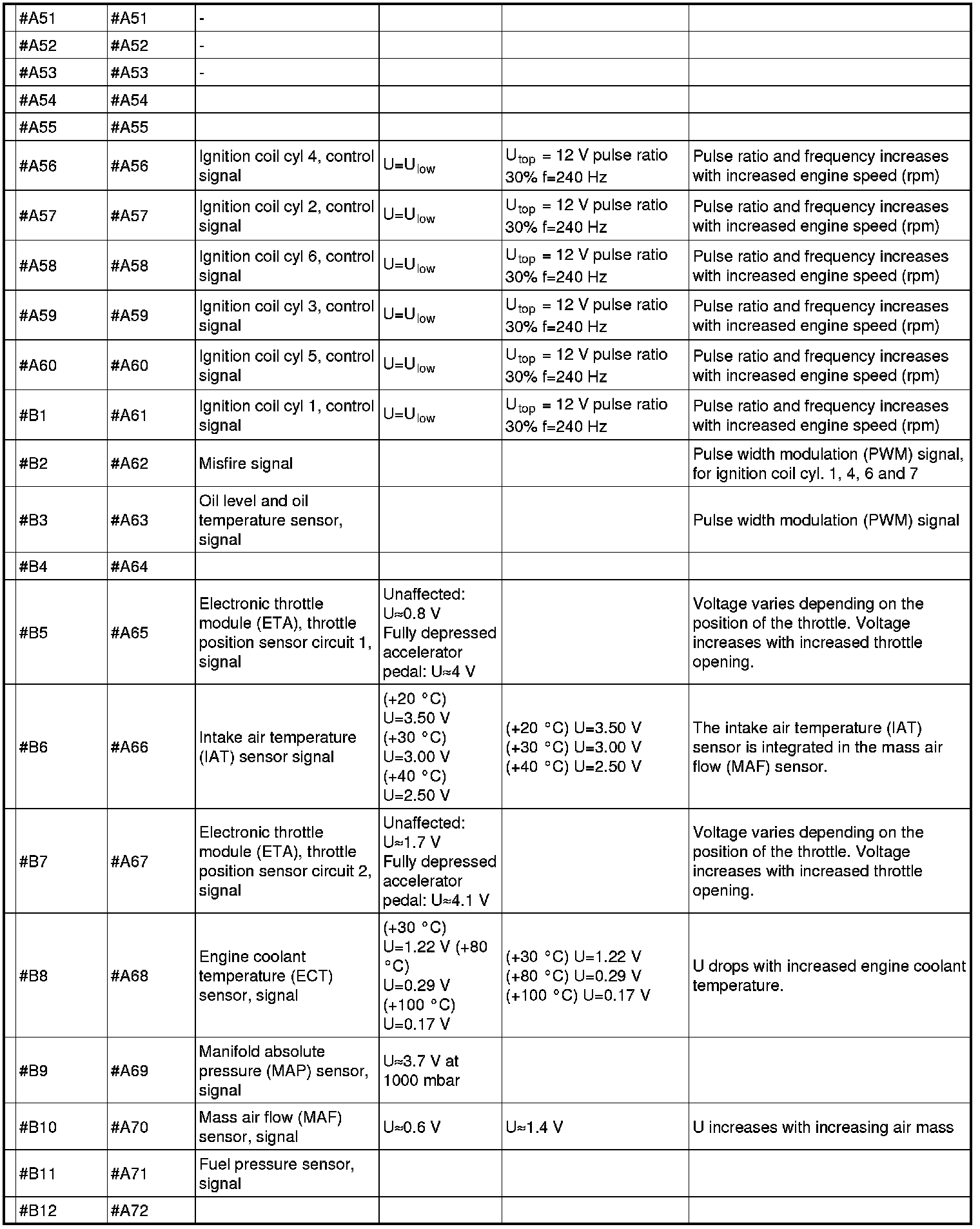 All values indicated below are between respective connection in column 2 and column 1 (on the breakout box). If this is not the case, it is indicated within brackets.