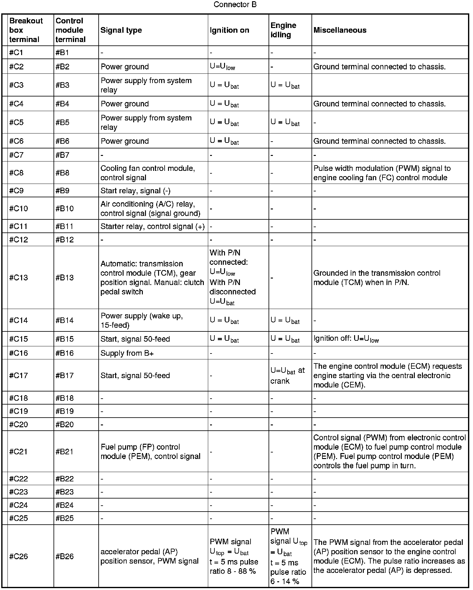 Connector B (58-pin engine side) corresponds to terminals #C1 - #58 on the breakout box.