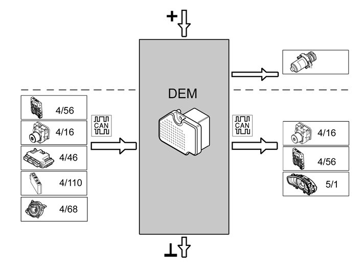 Active On demand Coupling (AOC) and its Differential electronic module (DEM) (4/82), has as its most important function to control the function for four-wheel drive, that is, power distribution between front and rear axle.