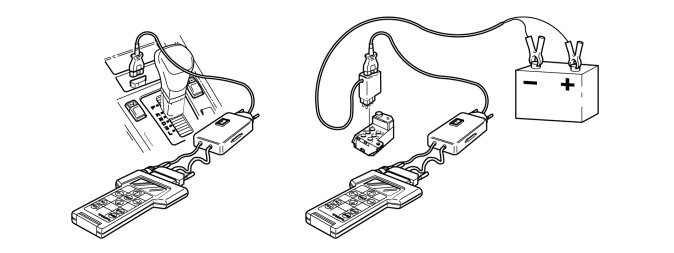 Volvo System Tester can be connected to diagnostic socket (OBD II) as well as to diagnostic socket with light-emitting diode via an adapter.