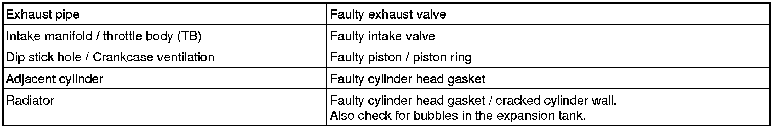 Using this method, the amount of leakage at the engine cylinders is measured and it is possible to locate the source of any leaks.