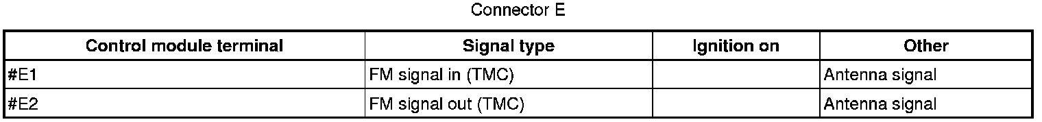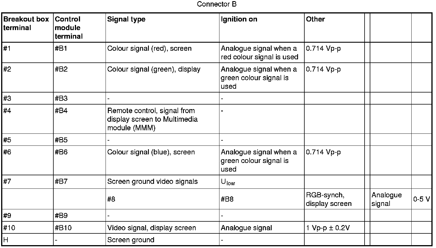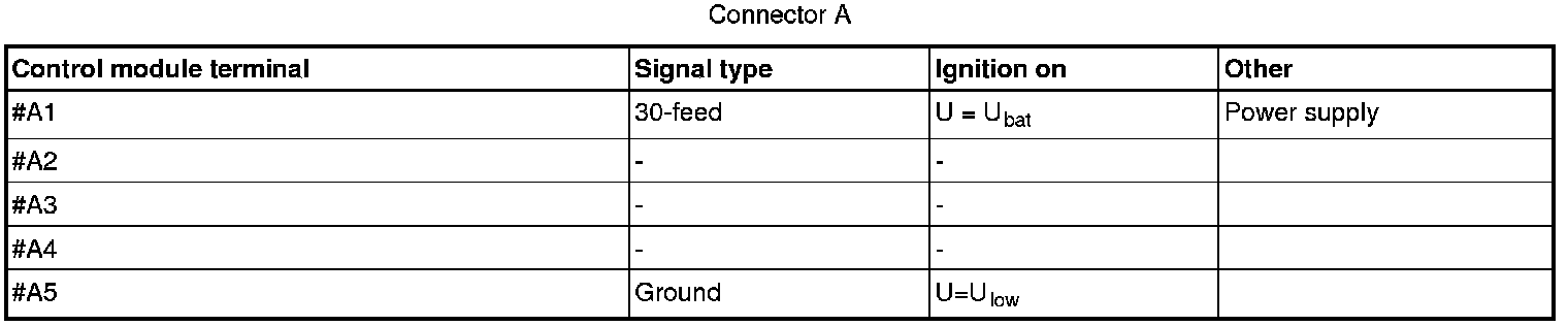 All the values given below are between the respective terminal in column 1 and terminal #A5 in column 2 (power ground) unless otherwise stated in brackets after the table entry.