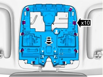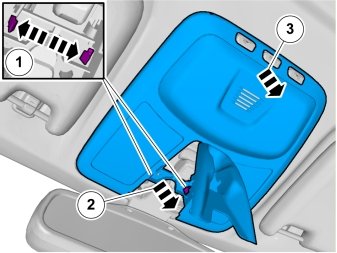 - Release the catches and carefully pull the interior lighting downwards and let it hang from its wires.
