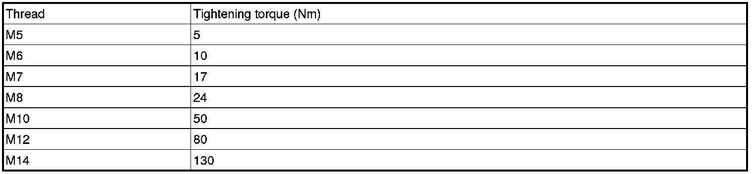 Note! Screws coated with a locking fluid or self locking nuts must be replaced with new when reinstalled.