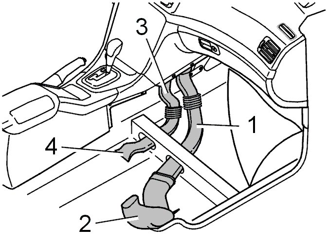 Pull / bend the duct (3) at the center console. Detach the duct at the upper mounting.