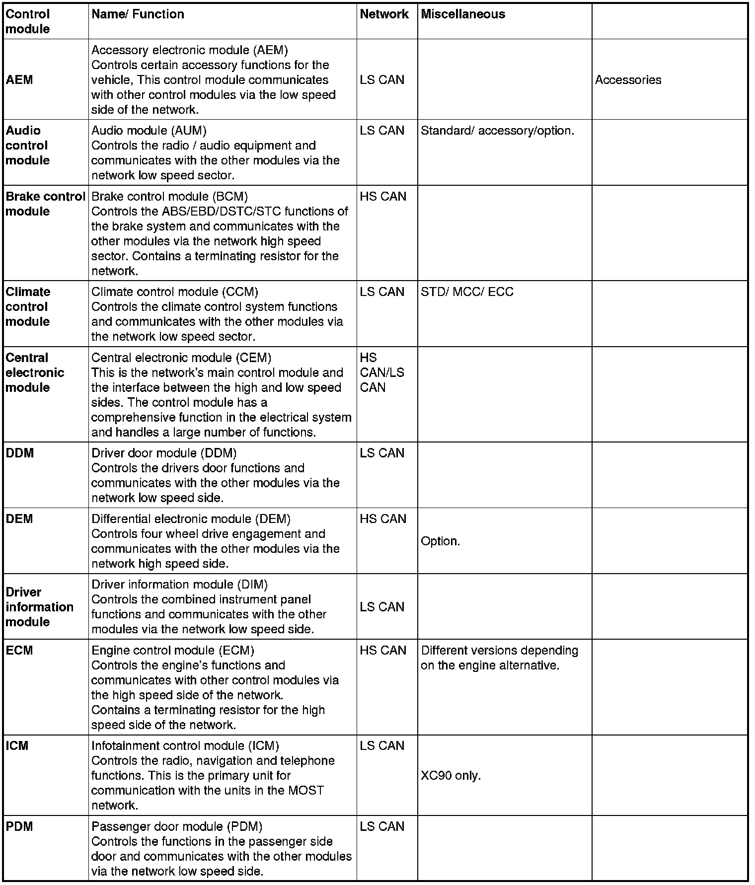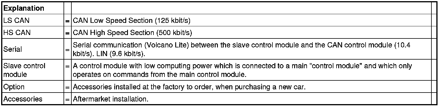 The number of control modules in the CAN network varies depending on the car model, equipment level and structure week, The structure week and construction week are not necessarily the same week. The construction week is the week in which the vehicle is built in the factory. The content of the vehicle is steered towards structure week. A structure week may extend over a number of construction weeks. Structure weeks are specified in the format YYYYWW.