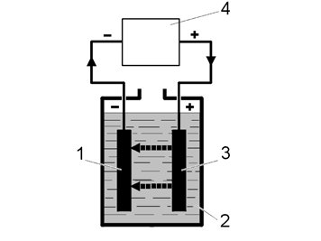 A battery works as follows